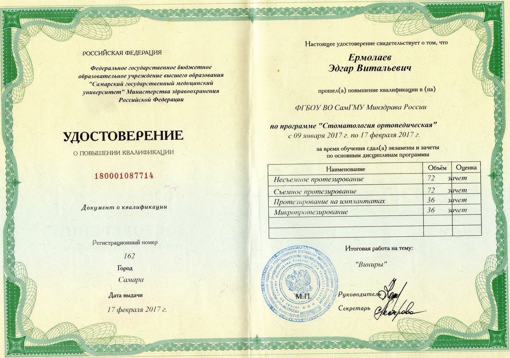 Дополнительные сертификаты и удостоверения